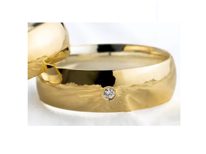 ALIANÇA DE MOEDA 6 MM ABAULADA C/ 1 PEDRA