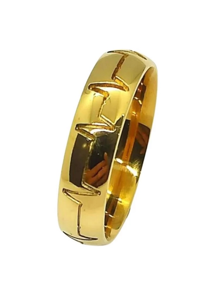 ALIANÇA DE MOEDA 4MM RETA TRABALHADA