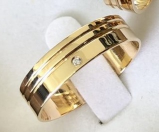 ALIANÇA DE MOEDA 8 MM QUADRADA 2 FRISOS LATERAL 1 PEDRA