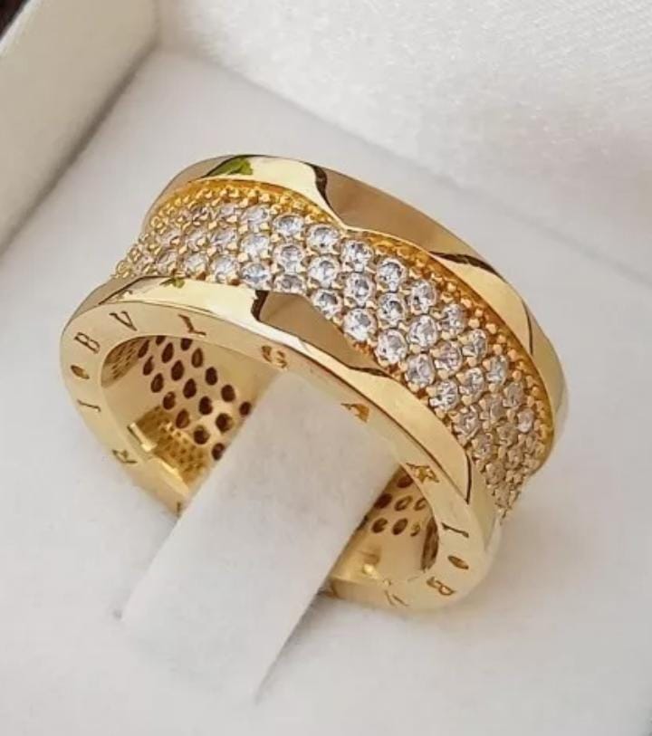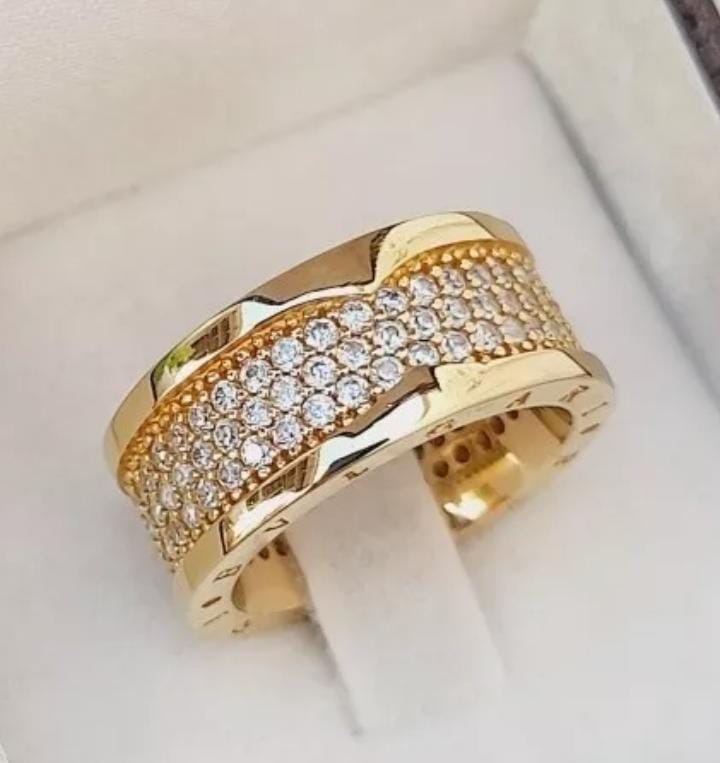 ALIANÇA DE MOEDA 9,0 MM RETA BVLGARI COM 132 PEDRA