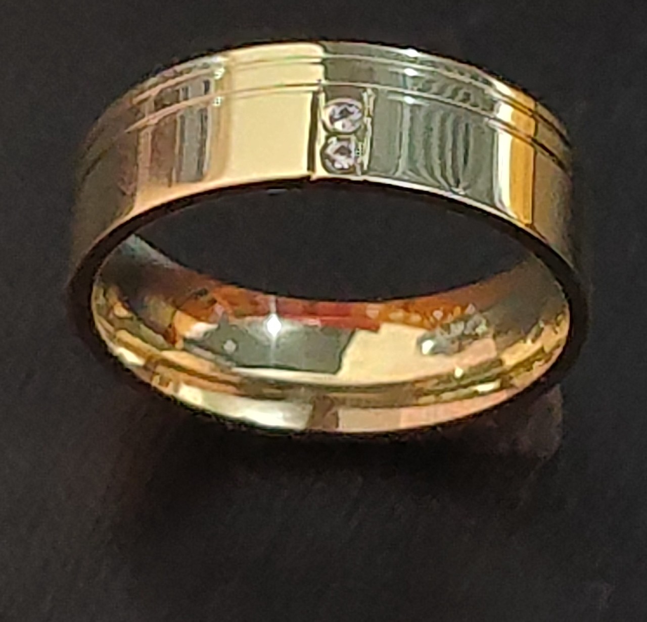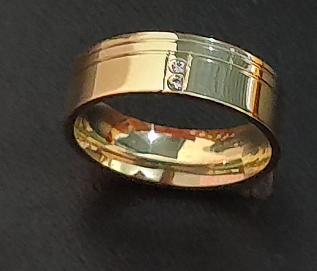 aliança de moeda antiga 6mm com 2 frisos e 2 pedras