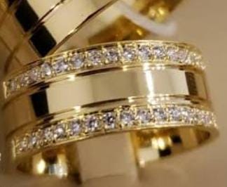 ALIANÇA DE MOEDA ANTIGA 8 MM COM 30 PEDRAS