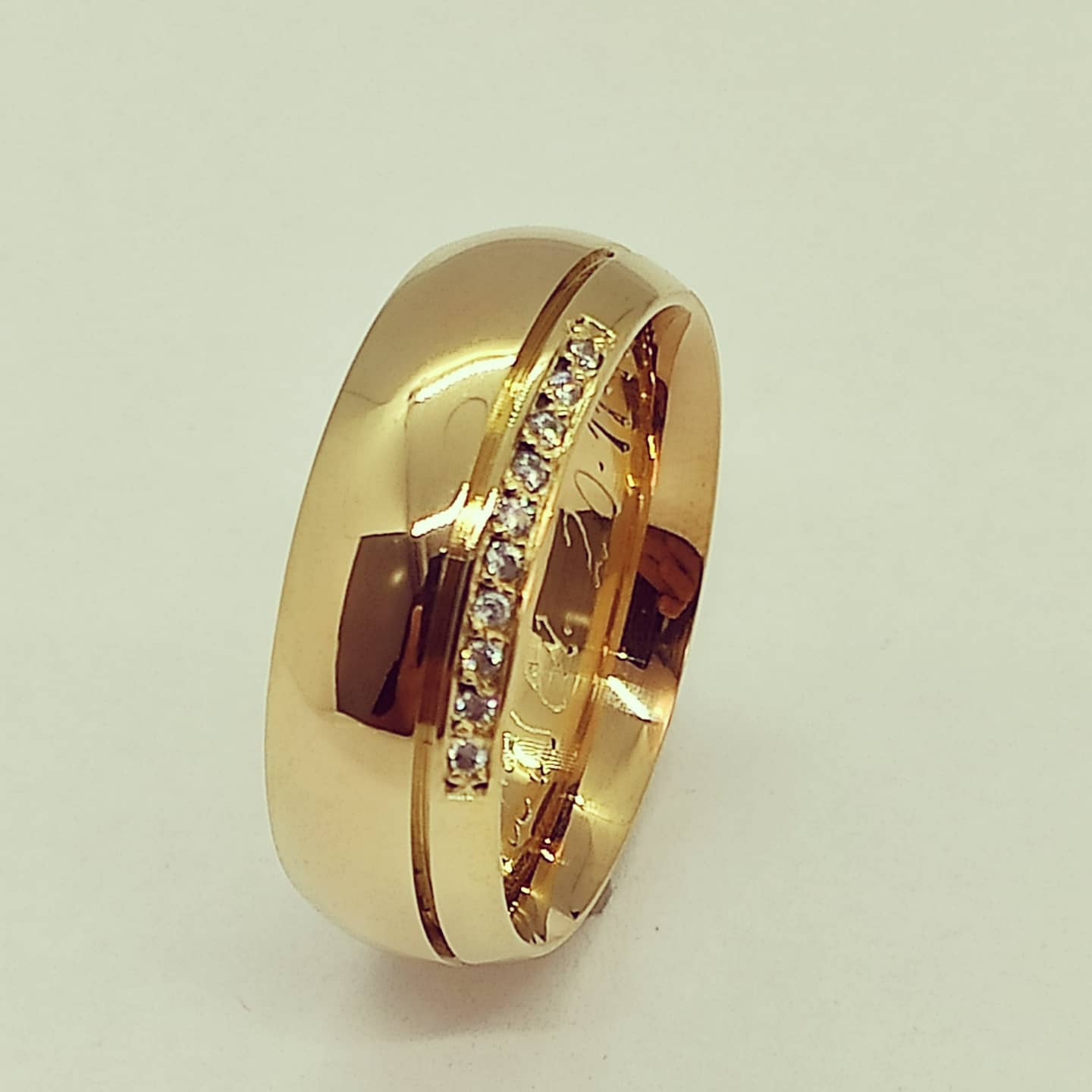 ALIANÇA MOEDA 8 MM ABAULADA COM 10 PEDRAS E 1 FRISO