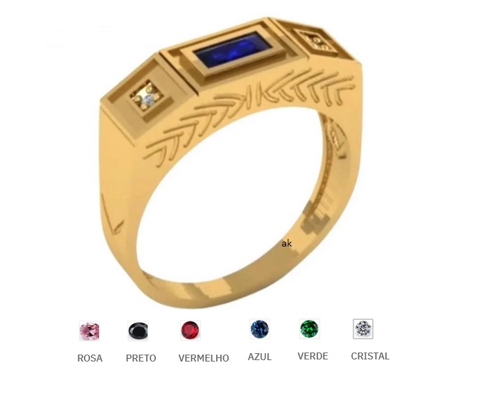 ANEL DE MOEDA MASCULINO DE PEDRA CENTRAL BAGUETE 3X6