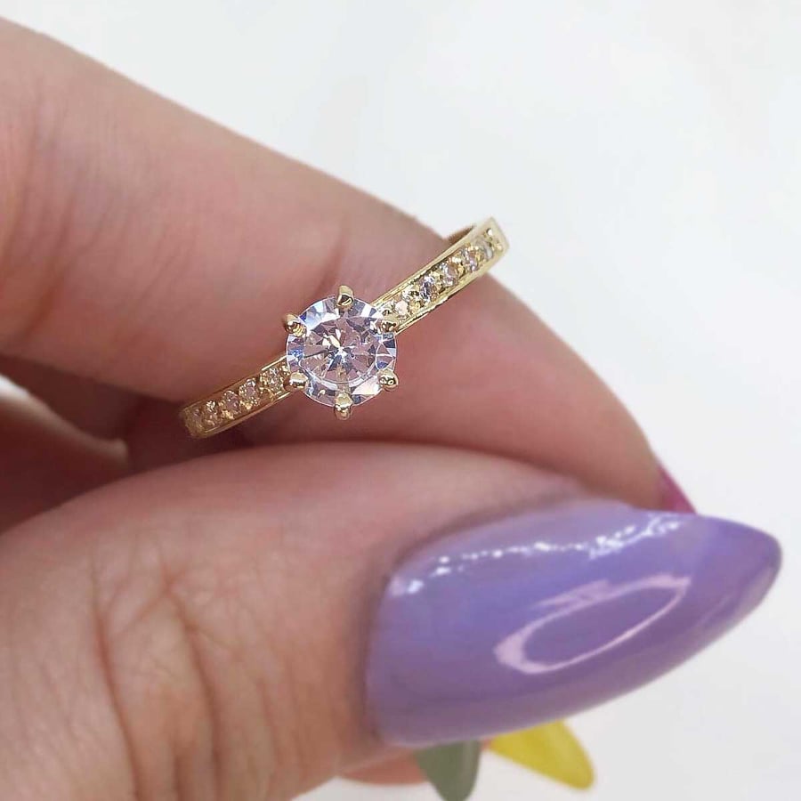 ANEL SOLITARIO DE MOEDA CRAVEJADO PEDRA 5MM