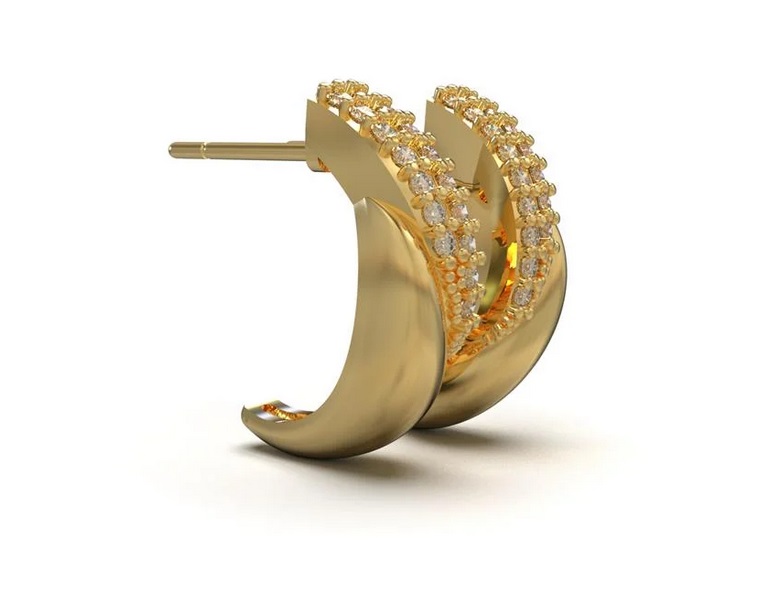 BRINCO DE MOEDA QUADRADO COM 60 PEDRAS E TARRAXA FOLHEADA A OURO